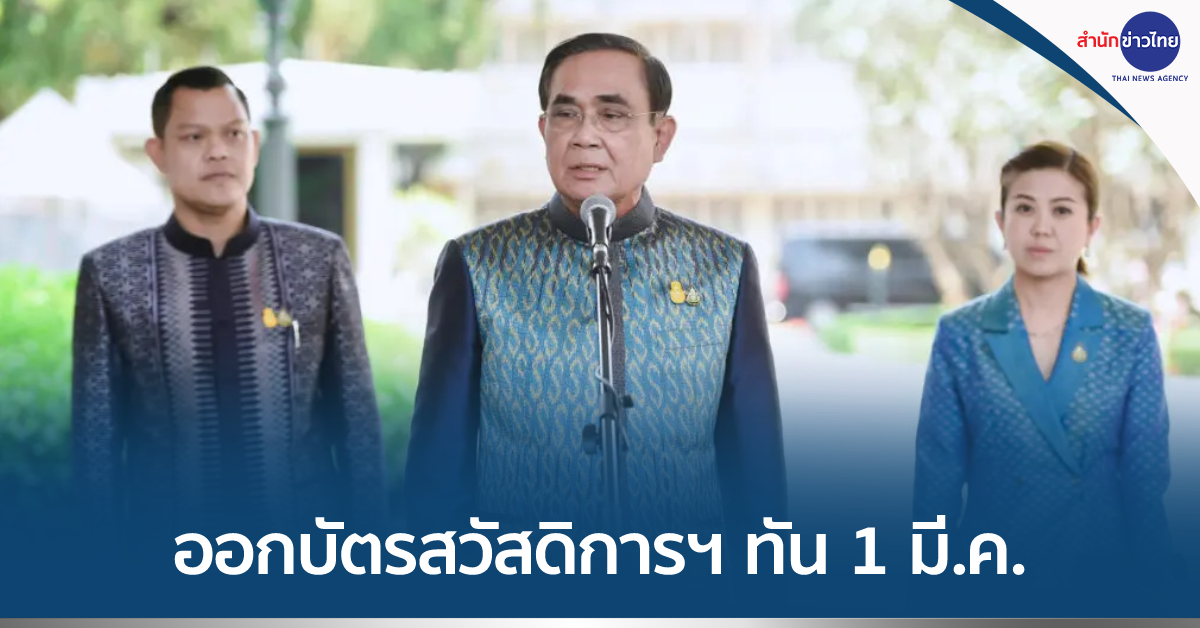 พล.อ.ประยุทธ์ จันทร์โอชา นายกรัฐมนตรีและรัฐมนตรีว่าการกระทรวงกลาโหม ยืนยันว่าจะให้การลงทะเบียนโครงการบัตรสวัสดิการแห่งรัฐทันวันที่ 1 มี.ค.นี้ ขณะนี้อยู่ระหว่างการตรวจสอบสิทธิ์ให้ถูกต้องและขยายกฎเกณฑ์ ทำให้มีผู้ได้รับสิทธิ์เพิ่มมากขึ้นทุกปี เพื่อให้ทุกคนได้รับความเป็นธรรม