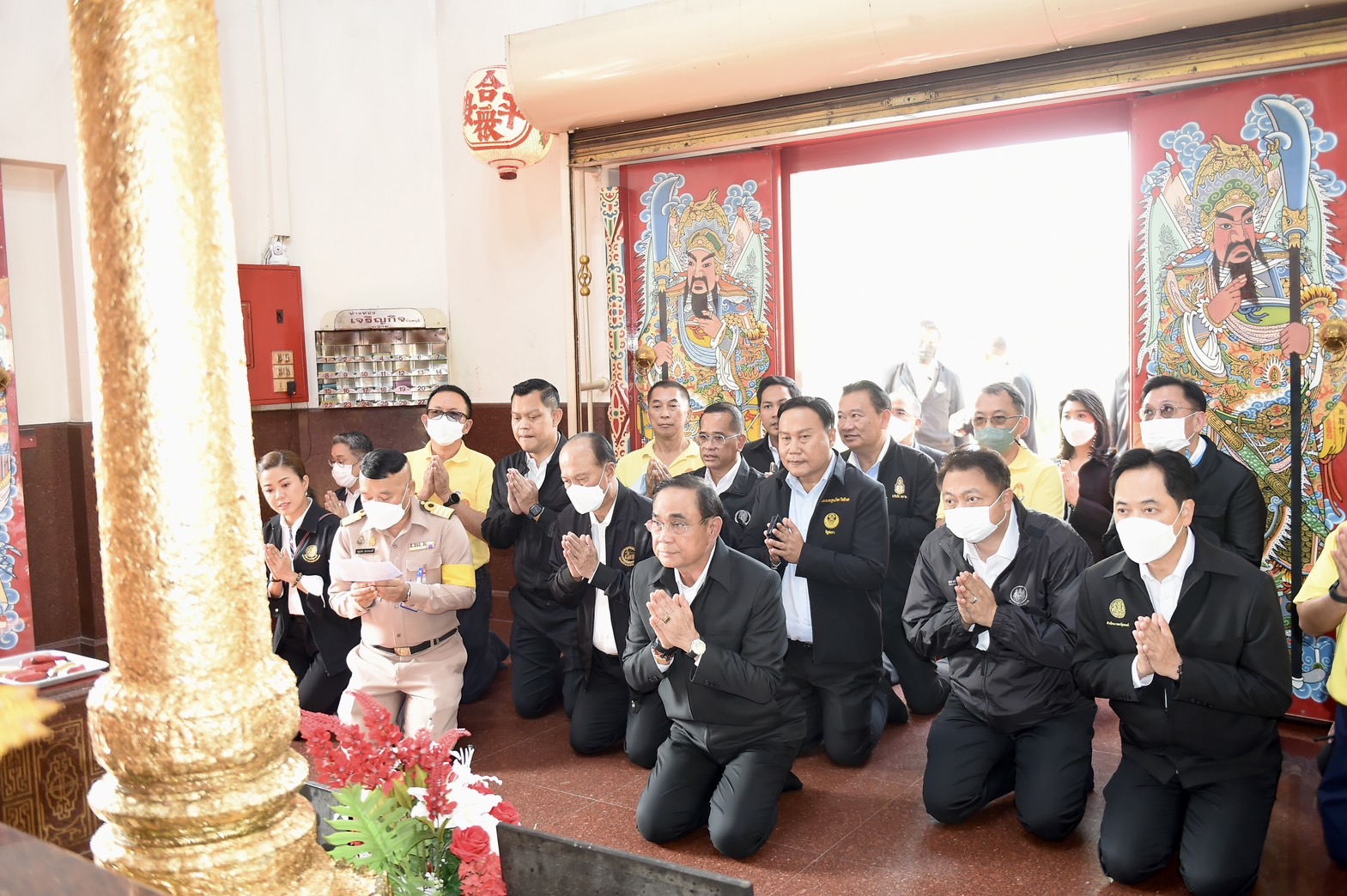 นายกรัฐมนตรีถวายสักการะศาลสมเด็จพระเจ้าตากสินมหาราช พร้อมนำคณะถวายพระมาลาและกล่าวคำบูชาสมเด็จพระเจ้าตากสิน ตอนหนึ่งว่า “ขอบูชาสักการะสมเด็จพระเจ้าตากสินมหาราช ด้วยเครื่องสักการะ ธูปเทียนดอกไม้ ขอเดชะพระบารมีเป็นที่พึ่ง ขอให้มีชัยชนะในการทุกเรื่อง ขอให้ศัตรูทั้งปวงจงพินาศหมดสิ้นไป ขอให้สรรพสิทธิ์การงานจงพลันสำเร็จ บังเกิดลาภผลเพิ่มพูน ขอสิ่งที่ประสงค์จงบรรลุสมปรารถนาทุกประการ” ในโอกาสนี้คณะกรรมการมูลนิธิศาลสมเด็จพระเจ้าตากสินมหาราชได้มอบผ้ายันต์ซึ่งเป็นถุงแดงที่มีพุทธคุณให้แคล้วคลาดปลอดภัยจากภยันตรายทั้งปวง ปกปักษ์รักษาคุ้มครอง