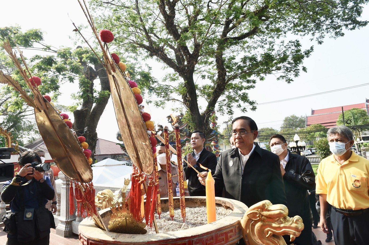 พล.อ.ประยุทธ์ จันทร์โอชา นายกรัฐมนตรีและรัฐมนตรีว่าการกระทรวงกลาโหม พร้อมด้วยพล.อ.อนุพงษ์ เผ่าจินดา รัฐมนตรีว่าการกระทรวงมหาดไทย นายสุชาติ ชมกลิ่น รัฐมนตรีว่าการกระทรวงแรงงาน นายธนากร วังบุญคงชนะรัฐมนตรีประจำสำนักนายกรัฐมนตรี ร่วมคณะตรวจราชการที่จังหวัดจันทบุรี โดยนายกรัฐมนตรี ได้นำคณะสวดบูชาศาลหลักเมือง พร้อมผูกผ้าสามสีที่เสาหลักเมือง