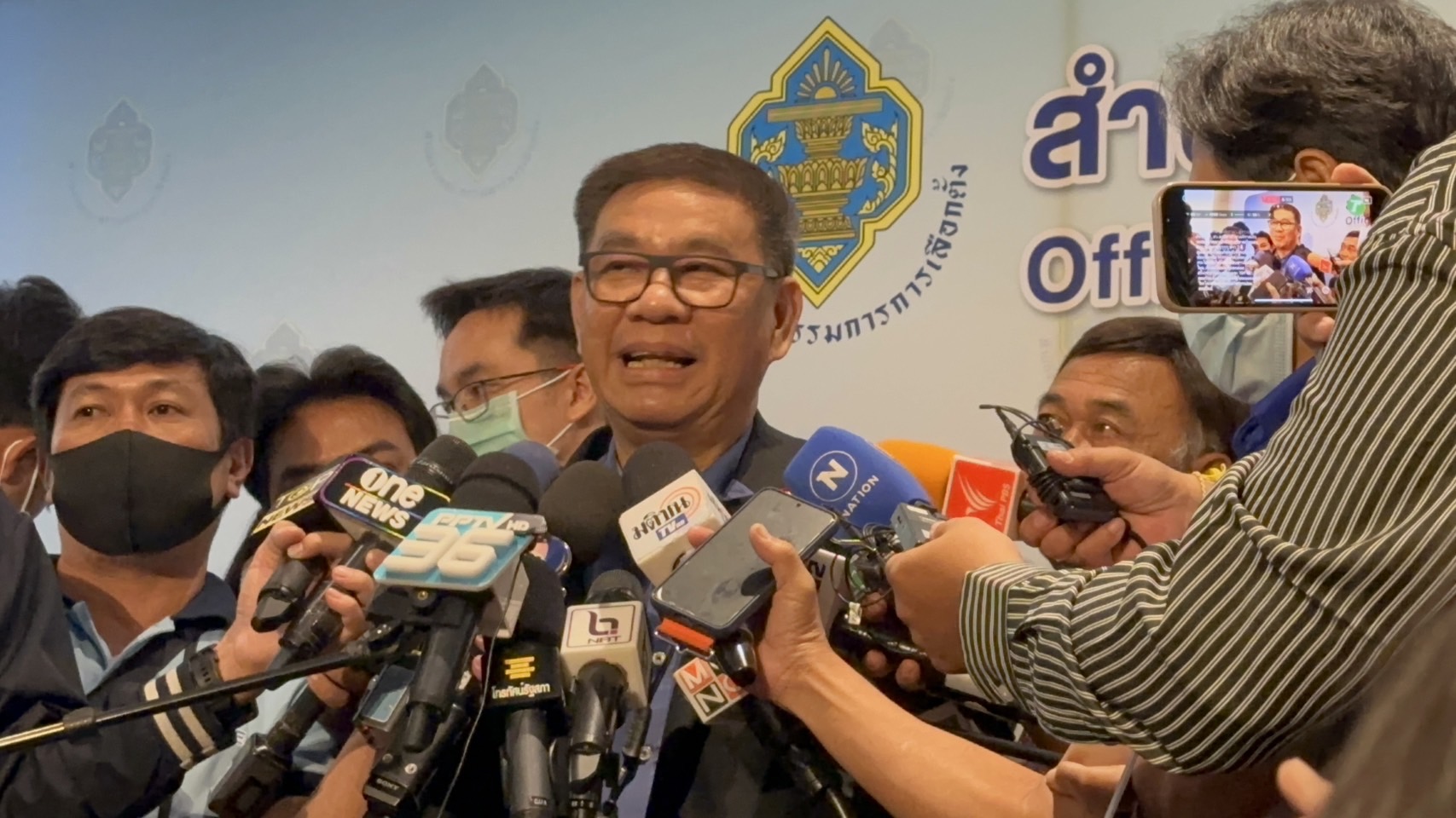 โรงแรมมิราเคิล แกรนด์ฯ 24 ก.พ.-“สมชัย” บุกกลางงานกกต.ขอนัดเลขาฯกกต.เข้าพบ 3 มี.ค. เคลียร์กรณีคำร้องสอบรวมไทยสร้างชาติปมขนคน-แจกของในงานประชุมใหญ่ ขู่ ดำเนินคดียกชุด