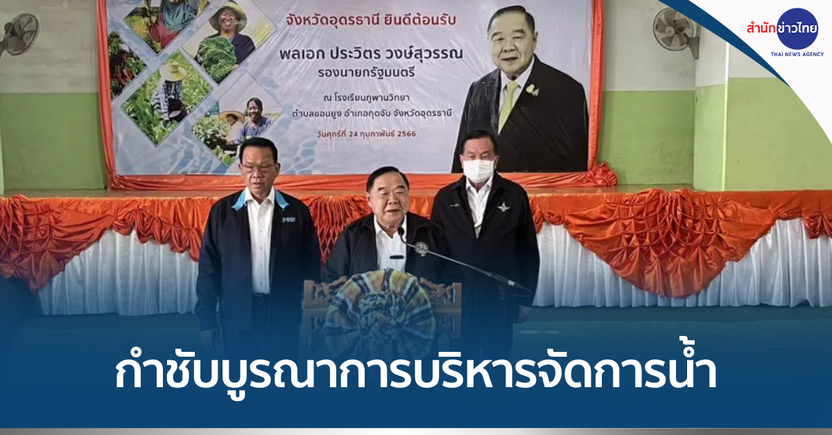 จ.อุดรธานี 24 ก.พ. – “พล.อ.ประวิตร” ลงพื้นที่อุดรฯ-หนองคาย-เลย กำชับบูรณาการบริหารจัดการน้ำ 10 มาตรการฤดูแล้งให้เข้มงวด ยันจะไม่ให้มีพื้นที่ภัยแล้งในอีสานอีก