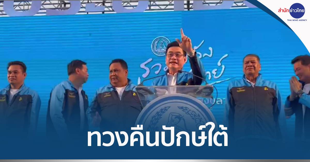 สงขลา 25 ก.พ. – “จุรินทร์” นำทัพประชาธิปัตย์ ปราศรัยใหญ่สงขลา คนร่วม 40,000 พร้อมนำประชาธิปัตย์คัมแบ็ก 58 เขต 58 คน ทวงคืนปักษ์ใต้