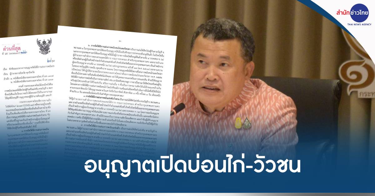 กรุงเทพฯ 26 ก.พ.- มหาดไทย สั่งผู้ว่าฯ ไฟเขียว ออกใบอนุญาตเปิดบ่อนไก่-วัวชน-แข่งม้า-ปลากัด หลังโควิดคลี่คลาย ส่งเสริมประเพณีวัฒนธรรมท้องถิ่น