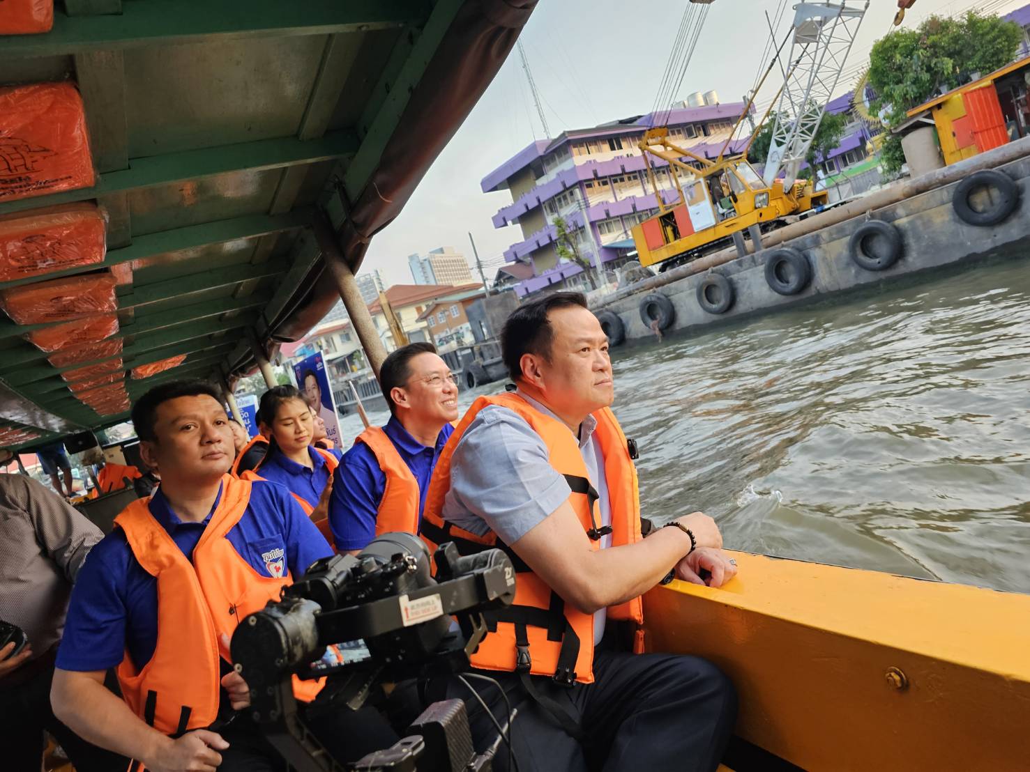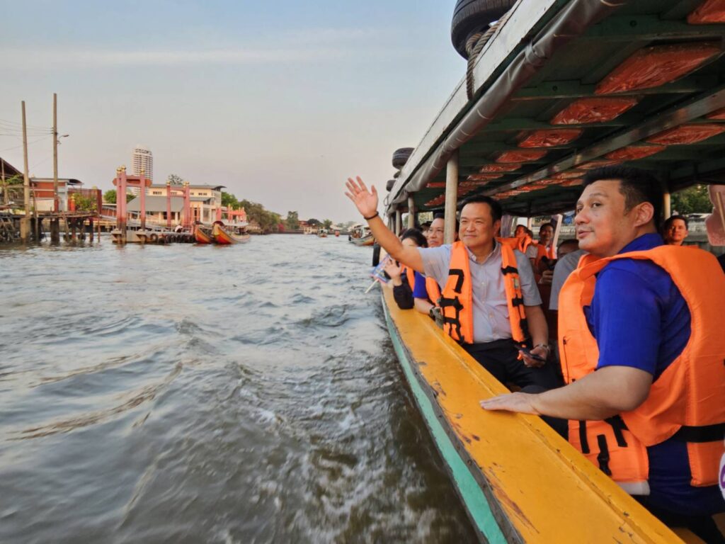 จากนั้นคณะลงเรือ หาเสียงทางน้ำ ทักทายประชาชนริมฝั่งแม่น้ำเจ้าพระยา-คลองบางกอกน้อย ตั้งแต่ตลาดวังหลัง-ท่าน้ำพรานนก-ร.พ.ศิริราช-ชุมชนวัดดุสิต-อู่เรือพระราชพิธี และชุมชนสันติชนสงเคราะห์ โดยมีประชาชน ส่งเสียงเชียร์ และรอให้กำลังใจ อยู่เป็นบางช่วง
