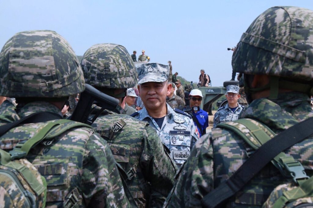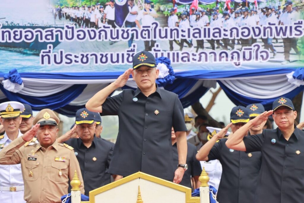 สงขลา 4 มี.ค. – ผบ.ทร. ตรวจพลสวนสนามทางบกและทางเรือของเหล่าสมาชิกไทยอาสาป้องกันชาติในทะเล ในพื้นที่เขตทัพเรือภาคที่ 2 จังหวัดสงขลา เนื่องในวันสถาปนาไทยอาสาป้องกันชาติ ประจำปี 2566