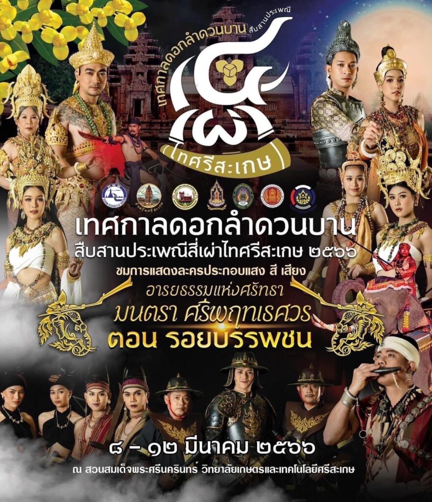 กรุงเทพ 11 มี.ค.- รัฐบาลชวนคนไทยเที่ยว เทศกาลดอกลำดวนบานฯ ศรีสะเกษ 2566 หนึ่งกิจกรรมเด่นในปฏิทินท่องเที่ยว ททท. แนะนำต้องไปชมอัตลักษณ์วิถี 4 เผ่า การแสดงแสงสีเสียง