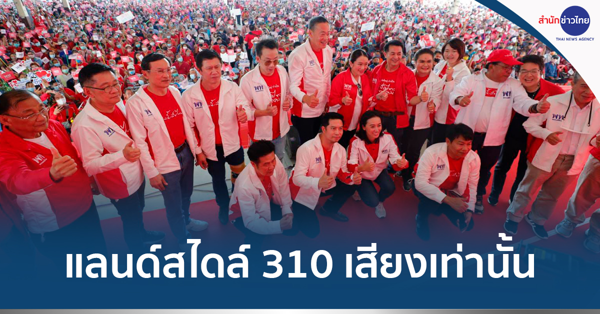 นายแพทย์ชลน่าน ศรีแก้ว ส.ส.น่าน หัวหน้าพรรคเพื่อไทย นายจาตุรนต์ ฉายแสง คณะกรรมการยุทธศาสตร์และทิศทางการเมือง พรรคเพื่อไทย นายสุธรรม แสงประทุม คณะกรรมการขับเคลื่อนนโยบายพรรคเพื่อไทย และ นายณัฐวุฒิ ใสยเกื้อ หัวหน้าครอบครัวเพื่อไทย ปราศรัยบนเวทีเพื่อไทย อำเภอบางระกำ จังหวัดพิษณุโลก ย้ำภารกิจสำคัญเพื่อชาติว่า พรรคเพื่อไทยจะต้องแลนด์สไลด์ได้ 310 เสียงขึ้นไป เพื่อเอาชนะเสียง ส.ว.250 ป้องกันจัดตั้งรัฐบาลแข่ง