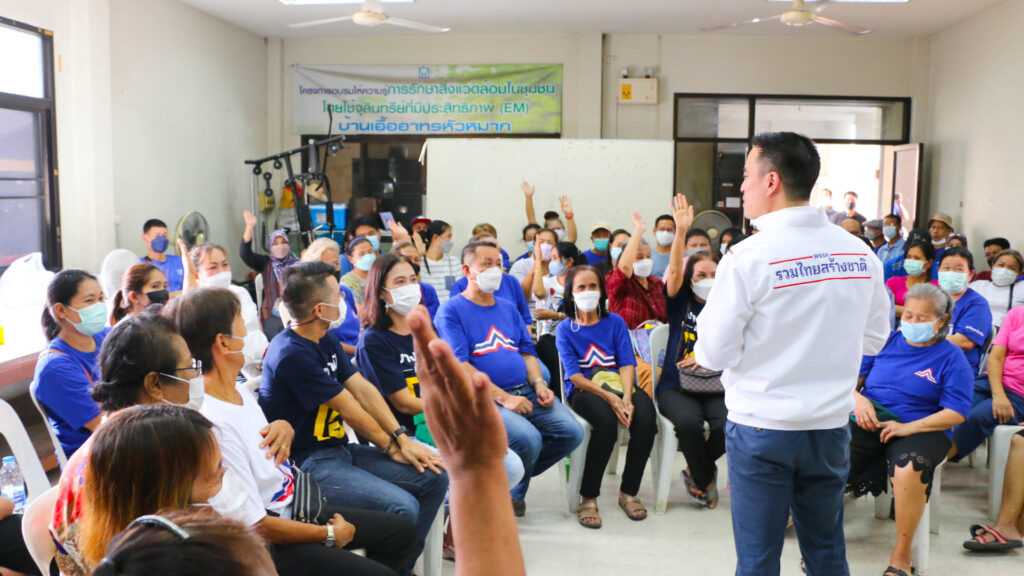 เมื่อวันที่ 12 มีนาคม เวลา 14.00 น. ที่บ้านเอื้ออาทรหัวหมาก เขตบางกระปิ กทม. นายเอกนัฏ พร้อมพันธุ์ เลขาธิการพรรครวมไทยสร้างชาติ (รทสช.) นายเกรียงยศ สุดลาภา นายทะเบียนพรรค ได้ลงพื้นที่ขอคะแนนเสียงช่วย น.ส.ฐิติพัฒน์ โชติเดชาชัยนันต์ อดีต ส.ส.กทม. ว่าที่ผู้สมัคร ส.ส.พรรครวมไทยสร้างชาติ เขตบางกะปิ-วังทองหลาง โดยมีแกนนำและผู้ที่อาศัยอยู่ในบ้านเอื้ออาทรหัวหมาก ร่วมรับฟังนโยบายของพรรครวมไทยสร้างชาติจำนวนมาก