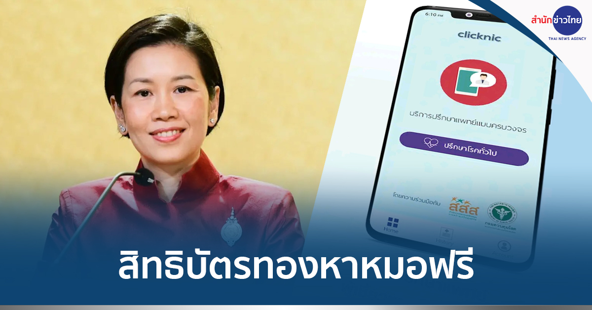 นางสาวรัชดา ธนาดิเรก รองโฆษกประจำสำนักนายกรัฐมนตรี เปิดเผยว่า รัฐบาลโดยสำนักงานหลักประกันสุขภาพแห่งชาติ (สปสช.) ได้เปิดบริการทางเลือกให้แก่ผู้มีสิทธิหลักประกันสุขภาพแห่งชาติ (สิทธิบัตรทอง 30 บาท) ที่ป่วยด้วยโรคทั่วไปที่ไม่ซับซ้อน 42 กลุ่มอาการโรค สามารถพบแพทย์เพื่อรักษาทางไกลหรือเทเลเมดิซีน (telemedicine) โดยแอปพลิเคชัน Clicknic โดยคลิกนิกเฮลท์ คลินิกเวชกรรม 42 โรค เช่น ตาแดง ท้องร่วง ไข้ หวัด อาหารเป็นพิษ กระเพาะอักเสบ ลำไส้อักเสบ กล้ามเนื้อ ข้ออักเสบ ลมพิษ ผื่น รวมถึงโรคโควิด 19 กลุ่มสีเขียวหรือกลุ่มที่มีอาการเล็กน้อย ฯลฯ สาระสำคัญคือเป็นโรคที่ไม่มีความซับซ้อนมากและพบได้บ่อย