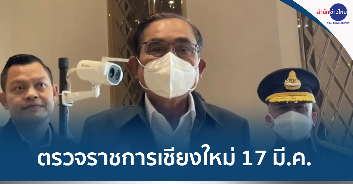 กทม. 16 มี.ค.- นายกฯ เตรียมลงพื้นที่ตรวจราชการ จ.เชียงใหม่ 17 มี.ค. รับฟังข้อเสนอสนับสนุนแผนเสนอชื่อครูบาเจ้าศรีวิชัยเป็นบุคคลสำคัญของโลก พร้อมตรวจเยี่ยมการพัฒนาผู้สูงอายุในพื้นที่