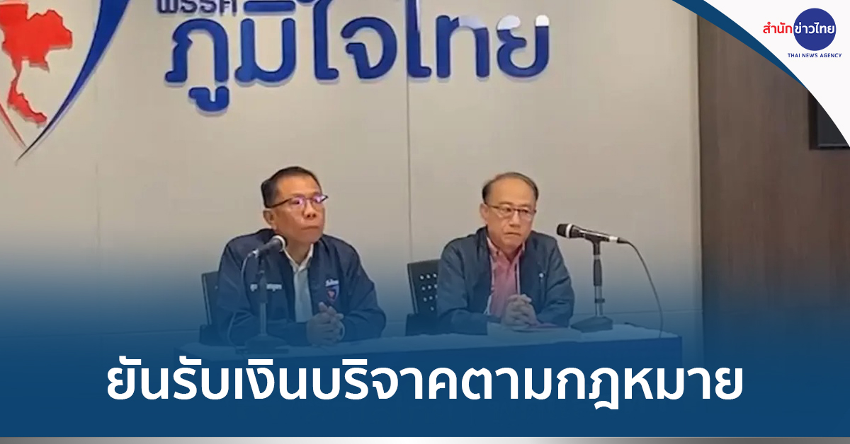 พรรคภูมิใจไทย 22 มี.ค.-นายทะเบียนภูมิใจไทย ยัน รับเงินบริจาคถูกต้องตามกฎหมาย มั่นใจไม่เป็นเหตุให้ถูกยุบพรรค บอก “ชูวิทย์” จินตนาการไปเอง แจง ‘บริษัทศุภวัฒน์’ บริจาคถูกต้อง ส่วนใครเป็นนอมินีใคร พรรคไม่ได้มีหน้าที่ตรวจสอบ