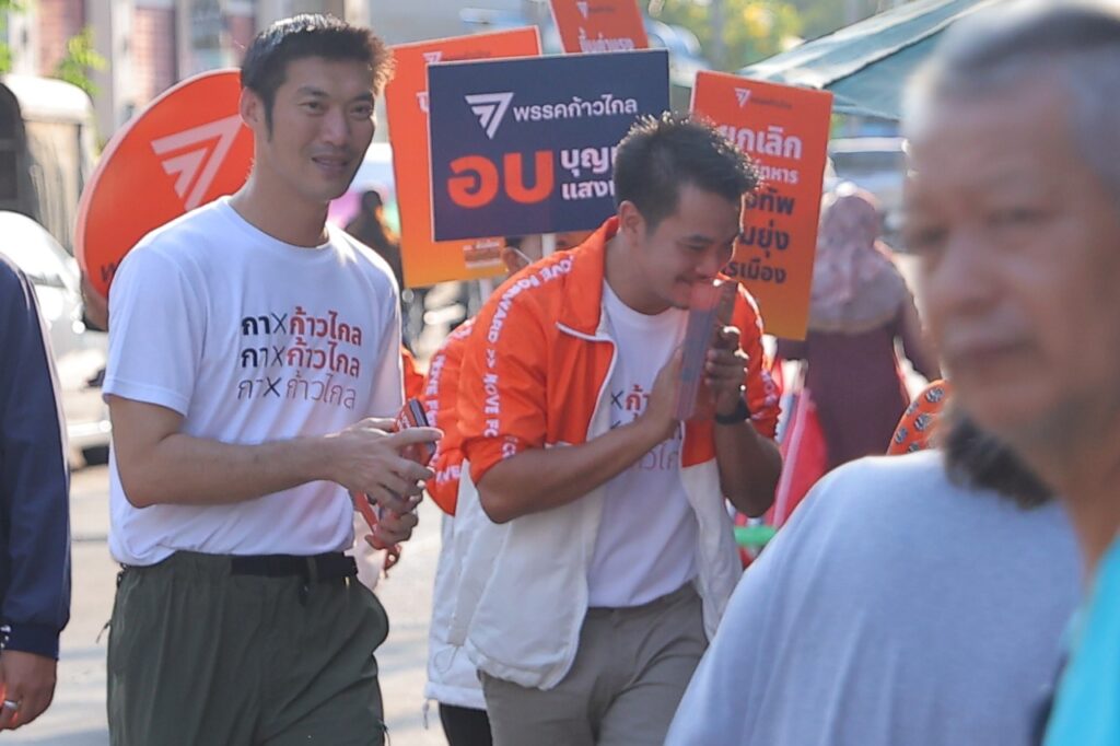 นายธนาธร จึงรุ่งเรืองกิจ ประธานคณะก้าวหน้า และผู้ช่วยหาเสียงของพรรคก้าวไกล พร้อมด้วย นายพริษฐ์ วัชรสินธุ ผู้จัดการการสื่อสารและการรณรงค์นโยบายพรรคก้าวไกล ร่วมหาเสียงกับว่าที่ผู้สมัคร ส.ส.สมุทรปราการ พรรคก้าวไกล ตลอดทั้งวัน