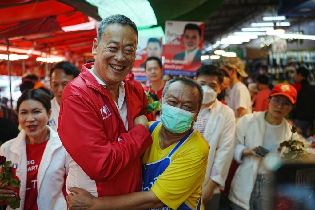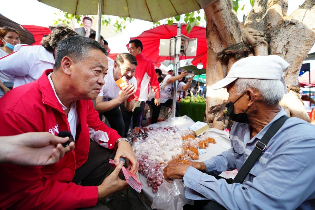 ตลาดสดธนบุรี 26 มี.ค.- “เศรษฐา” นั่งวินมอไซค์ นำทีมเพื่อไทยหาเสียงฝั่งธนฯ ขอบคุณโพลติดอันดับคนกรุงเทพฯ อยากให้เป็น นายกฯ ยัน “อุ๊งอิ๊ง” อันดับล่วงไม่เกี่ยวเปิดตัวแคนดิเดตช้า แจง ไม่อยู่ในบัญชีรายชื่อ เหตุแยกบริหารกับนิติบัญญัติ ไม่ขอเข้าไปอยู่ในการตอบโต้หลัง “บิ๊กตู่” เตือน ระวังสไลด์ออกนอกเลน