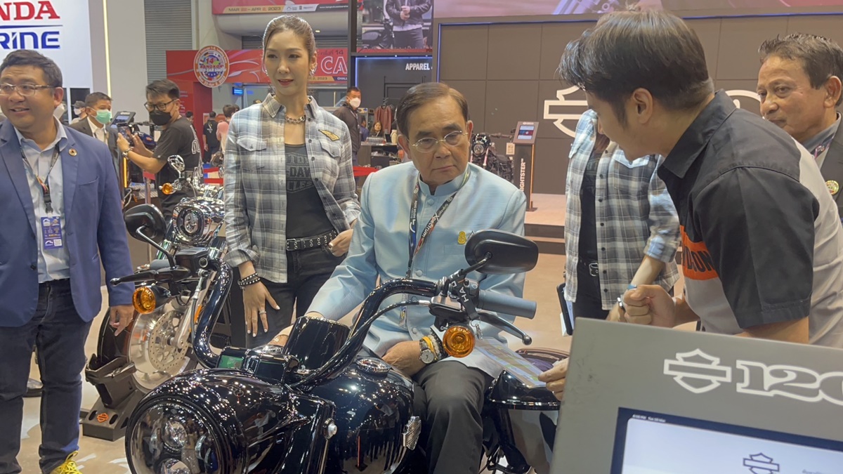 และเป็นที่น่าสังเกตว่า ในการเยี่ยมชมบูธจัดแสดงภายในงาน มีผู้บริหารของบริษัทมาคอยให้ข้อมูลและชี้แจงรายละเอียด มีช่วงหนึ่งที่นายกรัฐมนตรีเดินเร็วมาก สื่อมวลชนสอบถามว่า ทำไมถึงเดินเร็ว นายกรัฐมนตรี กล่าวติดตลกว่า “เดี๋ยวพวกเธอก็หาว่าฉันดูแต่พริตตี้” ก่อนจะทดลองนั่งรถมอเตอร์ไซค์ Harley-Davidson ที่มาจัดแสดงในงาน ซึ่งเป็นรถที่นายกรัฐมนตรีชื่นชอบมานาน โดยกล่าวติดตลกอีกว่า “เมื่อยแต่เท่” นอกจากนี้ ยังทดลองนั่งยานยนต์ไฟฟ้า และรถมอเตอร์ไซค์อีกหลายยี่ห้อด้วย. – สำนักข่าวไทย