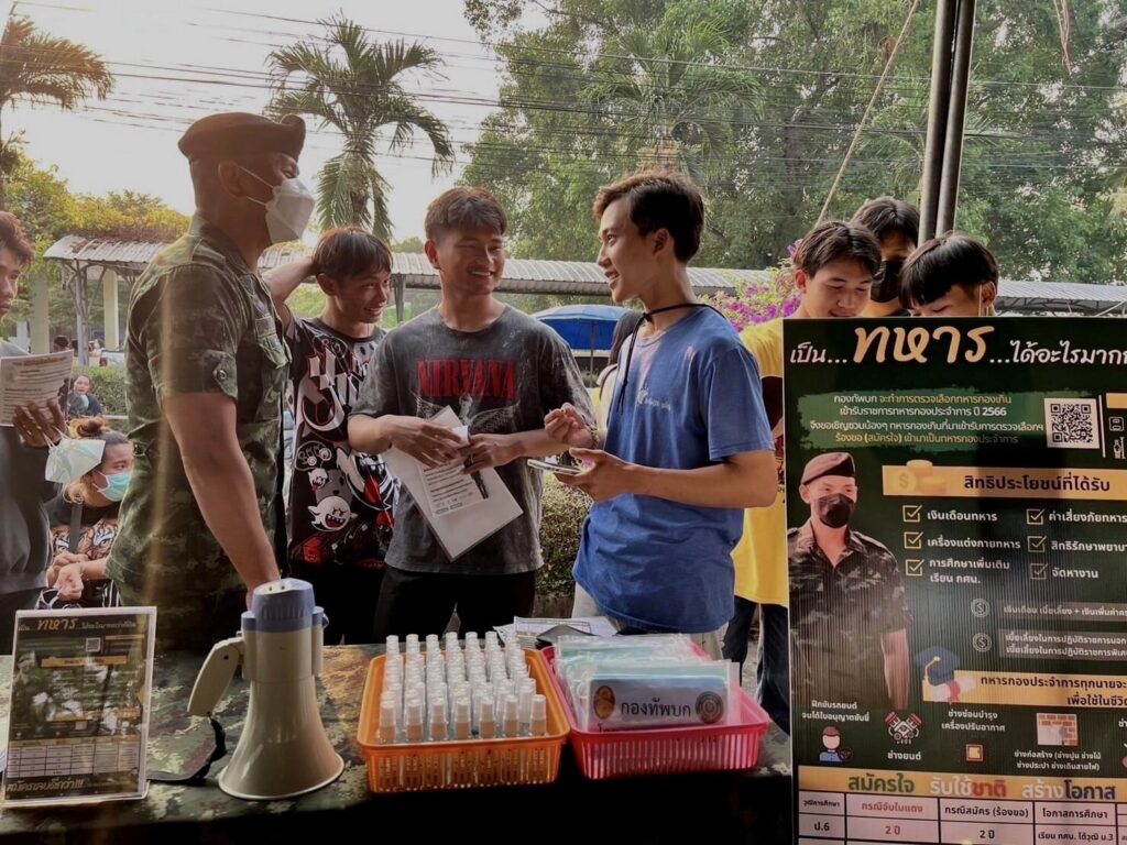 พลตรี (หญิง) ศิริจันทร์ งาทอง รองโฆษกกองทัพบก เปิดเผยว่า การตรวจเลือกทหารกองประจำการ ประจำปี 2566 เริ่มแล้วตั้งแต่วานนี้ ซึ่งภาพรวมในวันแรกเป็นไปด้วยความเรียบร้อย แต่ละพื้นที่ให้ความสำคัญกับการชี้แจงข้อมูลสิทธิสวัสดิการและประโยชน์ของการรับราชการทหารให้ผู้เข้ารับการตรวจเลือกและญาติได้รับทราบเพื่อสร้างแรงจูงใจให้สมัครเป็นทหาร โดยในวันแรก 1 เมษายน 2566 มีผู้ยื่นสมัครเป็นทหารถึง 1,869 นาย นอกจากนี้ พลเอกณรงค์พันธ์ จิตต์แก้วแท้ ผู้บัญชาการทหารบก แม่ทัพภาคที่ 1-4 ตลอดจนผู้บังคับบัญชาหน่วยทหารหลายพื้นที่ ได้เดินทางไปยังสถานที่ตรวจเลือกทหารเพื่อเยี่ยมชมการปฏิบัติงาน ให้กำลังใจเจ้าหน้าที่ และพบปะผู้เข้ารับการตรวจเลือกทหารพร้อมพูดคุยกับครอบครัวที่มาให้กำลังใจ เป็นการต้อนรับและสร้างความเชื่อมั่นในนโยบายการตรวจเลือกทหารและการดูแลทหารกองประจำการให้ประชาชนได้รับทราบด้วย อย่างไรก็ตามด้วยสภาพอากาศในห้วงนี้ค่อนข้างร้อน ประกอบกับบางพื้นที่มีภาวะฝุ่น PM 2.5 กองทัพบกได้กำชับให้หน่วยตรวจเลือกอำนวยความสะดวกให้กับผู้เข้ารับการตรวจเลือกฯ รวมไปถึงญาติและครอบครัวที่มาให้กำลังใจอย่างเหมาะสม