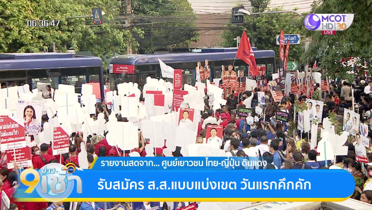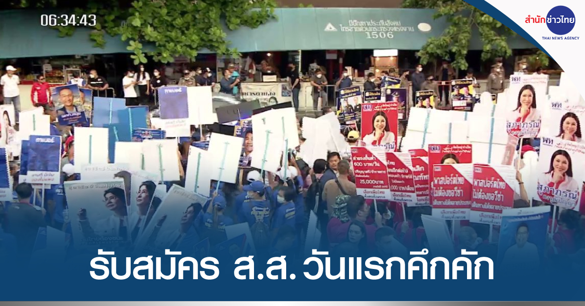 กรุงเทพฯ 3 เม.ย. – บรรดาแกนนำพรรคต่างๆ นำทัพว่าที่ผู้สมัคร ส.ส. สร้างสีสัน ก่อนจะมีการเปิดรับสมัครเลือกตั้ง ส.ส.แบบแบ่งเขต วันแรก ในช่วงเช้าวันนี้ (3 เม.ย.66) ท่ามกลางกองทัพสื่อมวลชนและกลุ่มผู้สนับสนุนพรรคต่างๆ ที่มารอกันเป็นจำนวนมาก บรรยากาศเป็นไปอย่างคึกคัก. – สำนักข่าวไทย