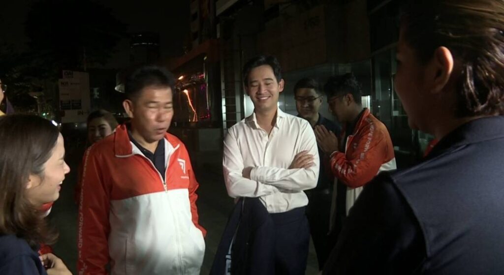 นายพิธา ลิ้มเจริญรัตน์ หัวหน้าพรรคก้าวไกล พร้อมด้วยสมาชิกพรรค รวมตัวกันที่หน้าอาคารไทยซัมมิท ถนนเพชรบุรี ตั้งแต่เวลาประมาณ 05.00 น. เพื่อเตรียมตัวนำทีมลูกพรรค ขึ้นรถเมล์ พาเดินทางไปสมัครรับเลือกตั้ง ส.ส.แบบแบ่งเขต ที่อาคารกีฬาเวสน์ 2 ศูนย์เยาวชนกรุงเทพมหานคร (ไทย-ญี่ปุ่น)
