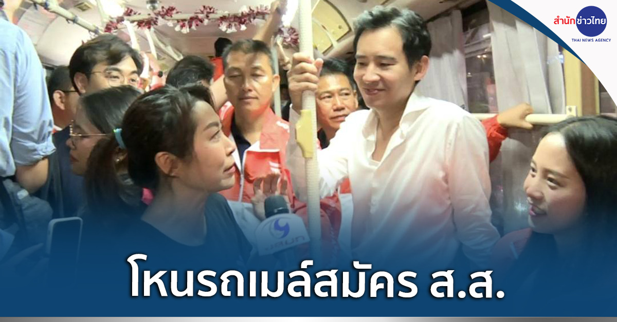 กรุงเทพฯ 3 เม.ย.- พิธา หัวหน้าพรรคก้าวไกล นำทีมสมาชิกพรรค โหนรถเมล์สมัคร ส.ส. ความพร้อมสู่สนามเลือกตั้ง แย้มถ้าเป็นไปได้อยากได้หมายเลข 9
