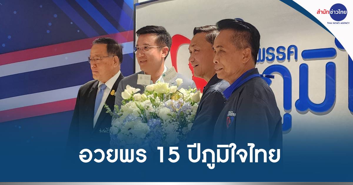 นายชัยวุฒิ ธนาขมานุสรณ์ รัฐมนตรีว่าการกระทรวงดิจิทัลเพื่อเศรษฐกิจและสังคม ในรองหัวหน้าพรรคพลังประชารัฐ พร้อมด้วย นายสันติ พร้อมพัฒน์ รัฐมนตรีช่วยว่าการกระทรวงการคลัง เลขาธิการพรรคพลังประชารัฐ นำช่อดอกไม้ของพลเอกประวิตร วงษ์สุวรรณ รองนายกรัฐมนตรี หัวหน้าพรรคพลังประชารัฐ มาแสดงความยินดีกับพรรคภูมิใจไทย ก้าวสู่ปีที่ 15 โดยมีนายทรงศักดิ์ ทองศรี รัฐมนตรีช่วยว่าการกระทรวงมหาดไทย ในฐานะรองหัวหน้าพรรค และนายศุภชัย โพธิ์สุ อดีตรองประธานสภา ผู้แทนราษฎร เป็นตัวแทนรับมอบกระเช้าดอกไม้