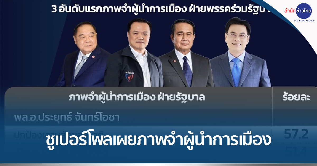 กรุงเทพฯ 8 เม.ย. – ซูเปอร์โพล เผยผลสำรวจภาพจำผู้นำการเมืองขั้วรัฐบาล “อนุทิน” คนติดตาแก้วิกฤติโควิด ไม่เป็นต้นเหตุขัดแย้ง “จุรินทร์” มีผลงานอุ้มเกษตรกร ซื่อสัตย์สุจริต ด้าน “บิ๊กตู่” ป้องสถาบันชาติ ทำบ้านเมืองสงบ ส่วนฝ่ายค้าน ภาพจำ “แพทองธาร” ลูกทักษิณ ช่วยรักษาฐานเพื่อไทย ด้าน “พิธา” การศึกษาดี-พูดเก่ง ชี้ประชาชนไม่สบายใจสื่อนำประเด็น ม.112 มาให้นักการเมืองอภิปรายในที่สาธารณะ