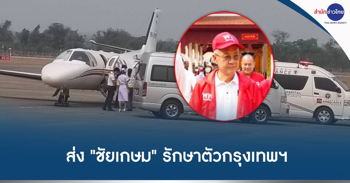 น่าน 9 เม.ย.-รพ.น่าน ส่งตัว “ชัยเกษม นิติสิริ” แคนดิเดตนายกฯ พรรคเพื่อไทย ขึ้นเครื่องบินเจ็ท รักษาตัวในกรุงเทพฯ