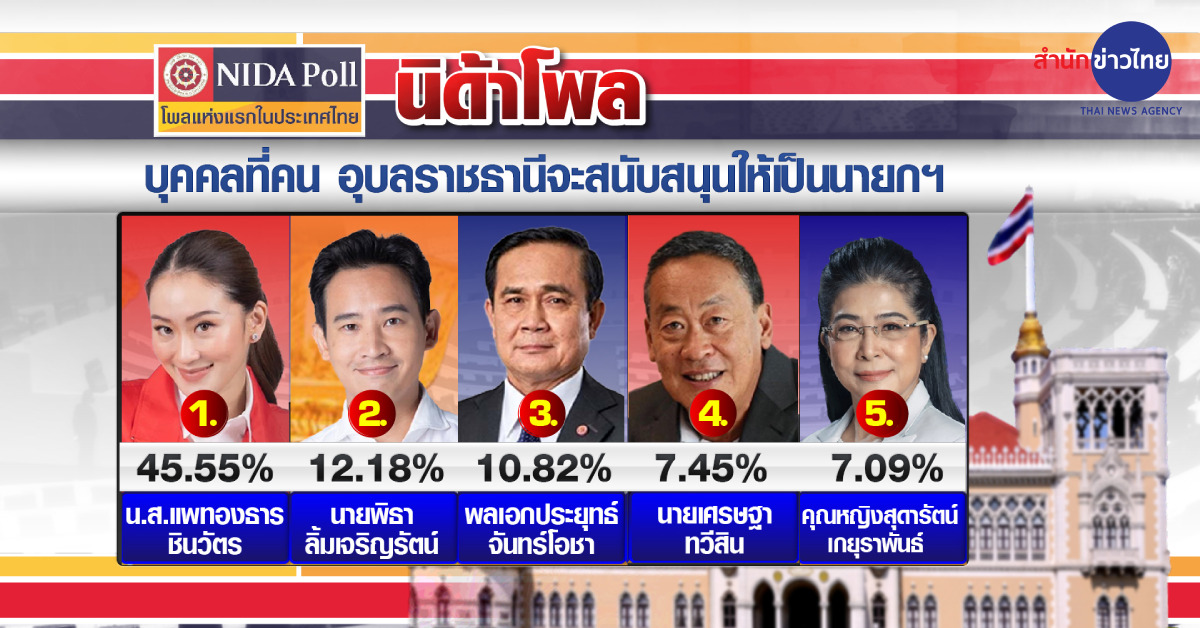 บุคคลที่คนอุบลราชธานีจะสนับสนุนให้เป็นนายกรัฐมนตรีในการเลือกตั้งครั้งนี้