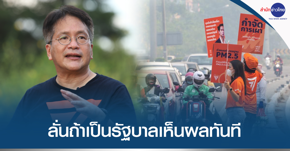 กรุงเทพฯ 9 เม.ย. – “ก้าวไกล” ประกาศ 7 ข้อ แก้วิกฤติฝุ่น PM 2.5 ถ้าเป็นรัฐบาลเห็นผลทันที 1 ม.ค.67 ดัน พ.ร.บ.อากาศสะอาด – งบตำบลละ 3 ล้านป้องกันไฟป่า – รถทุกคันตรวจสภาพฟรี 3 เดือน ด้านผู้สมัคร ส.ส.เชียงใหม่ เขต 1 จี้รัฐบาลแก้ปัญหา หลังปล่อยประชาชนรับผลกระทบ รายได้ธุรกิจกลางแจ้งสูญ 30% ใน 3 เดือน