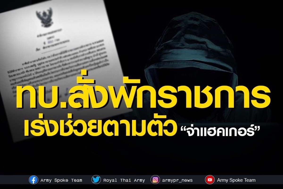 กองทัพบก 10 เม.ย. – ทบ.สั่งพักราชการ “จ่าสิบโท” ผู้ต้องหาคดี “แฮกเกอร์” ให้หน่วยต้นสังกัดเร่งติดตามตัวทุกช่องทาง เพื่อเข้าสู่กระบวนการทางคดี