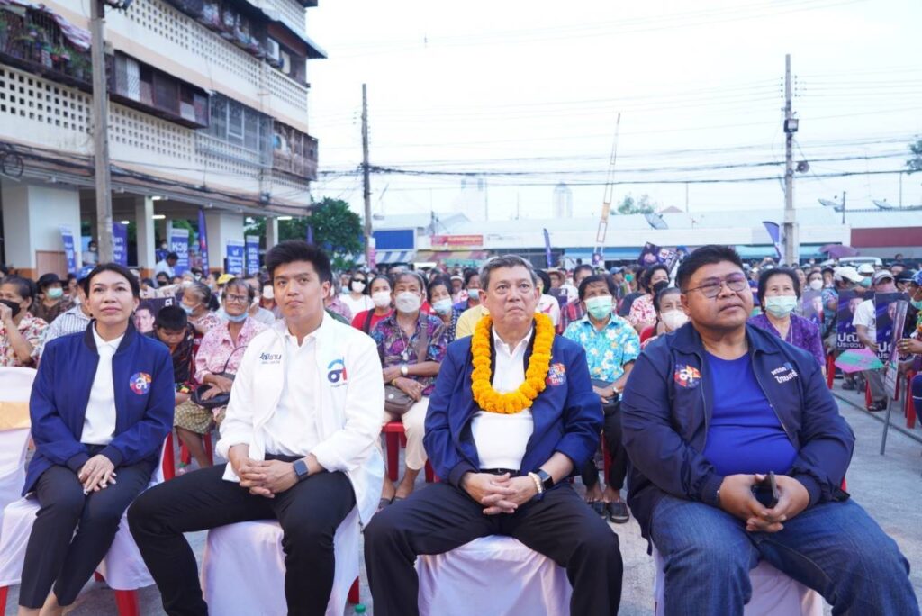 ที่แฟลต กม.4 เขตบางนา คุณหญิงสุดารัตน์ เกยุราพันธุ์ หัวหน้าพรรคไทยสร้างไทย และแคนดิเดต นายกรัฐมนตรี นายสุพันธุ์ มงคลสุธี รองหัวหน้าพรรค และแคนดิเดตนายกรัฐมนตรี น.อ.อนุดิษฐ์ นาครรทรรพ รองหัวหน้าพรรคไทยสร้างไทย พ.ต.ท.กุลธน ประจวบเหมาะ รองหัวหน้าพรรค พร้อมคณะผู้บริหารและ นายปณิธาน ประจวบเหมาะ ผู้สมัครส.ส.เขตบางนา พระโขนง หมายเลข 4 ร่วมขึ้นเวที ปราศรัยพบป่ะพี่น้องชาวบางนา ซึ่งเดินทางมาฟังนโยบาย และอุดมการณ์ของพรรคแน่นพื้นที่การปราศรัย โดยมีผู้สนับสนุน กองเชียร์ รวมถึงแฟนคลับร่วมต้อนรับอย่างอบอุ่น พร้อมส่งเสียงให้กำลังใจคุณหญิงสุดารัตน์ ในการทำงานเพื่อพี่น้องประชาชน