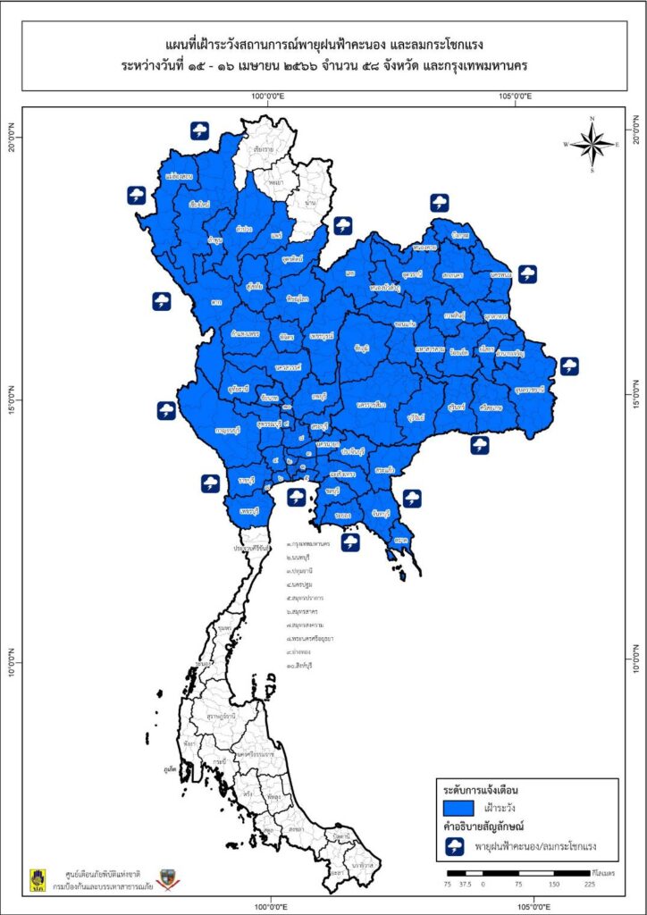 ปภ.13 เม.ย.- ปภ.เน้นย้ำ 58 จังหวัด “เหนือ-อีสาน-กลางและ กทม.” รับมือฝนฟ้าคะนองและลมกระโชกแรง ช่วงวันที่ 15-16 เม.ย. 66