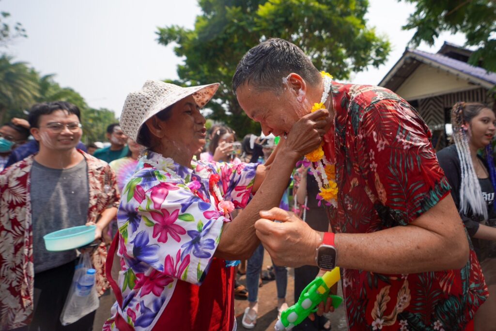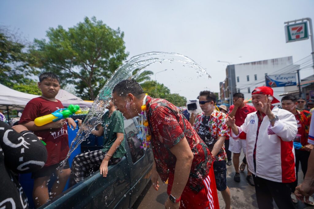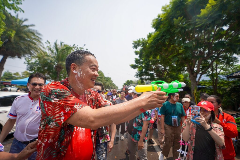 โดยบรรยากาศเป็นไปอย่างคึกคัก ประชาชนรุมสาดน้ำ ปะแป้ง พร้อมขอถ่ายรูปกับนายเศรษฐา นายพานทองแท้ และคณะพรรคเพื่อไทย อย่างสนุกสนาน ซึ่งนายเศรษฐาได้สาดน้ำ และปะแป้งกลับด้วยเช่นกัน .-สำนักข่าวไทย