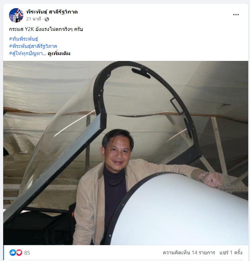 เมื่อวันที่ 13 เม.ย. นายพีระพันธุ์ สาลีรัฐวิภาค หัวหน้าพรรครวมไทยสร้างชาติ โพสต์ภาพถ่ายในอดีตบนเฟซบุ๊กส่วนตัว พร้อมแคปชัน “กระแส Y2K ยังแรงไม่ตกจริงๆ ครับ #ทีมพีระพันธุ์ #พีระพันธุ์สาลีรัฐวิภาค #สู้ให้ทุกปัญหาพึ่งพาได้ทุกเรื่อง”