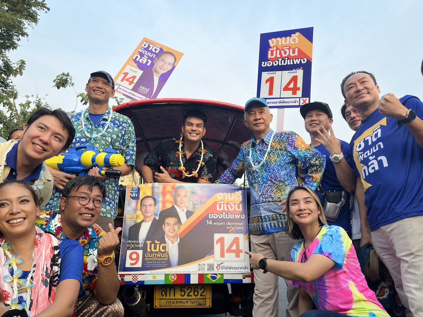วันนี้ (13 เมษายน 2566) นายสุวัจน์ ลิปตพัลลภ ประธานพรรคชาติพัฒนากล้า นายกรณ์ จาติกวณิช หัวหน้าพรรคชาติพัฒนากล้า และนายนันทพันธ์ ศุภณ์ภัทรพงศ์ ผู้สมัคร ส.ส. เขต 1 กทม. และคณะผู้สมัคร ส.ส.กทม.ของพรรค เดินทางไปยังวัดบวรนิเวศราชวรวิหาร เพื่อเข้าสักการะพระไพรีพินาศ และสรงน้ำพระธรรมวชิรญาณ เจ้าอาวาสวัดบวรนิเวศราชวรวิหาร จากนั้นได้เดินเล่นน้ำที่ถนนข้าวสาร ซึ่งจัดกิจกรรมเล่นน้ำสงกรานต์ ก่อนที่จะร่วมขบวนตุ๊กตุ๊ก ทักทายพี่น้องประชาชนตามถนนย่านเมืองเก่า