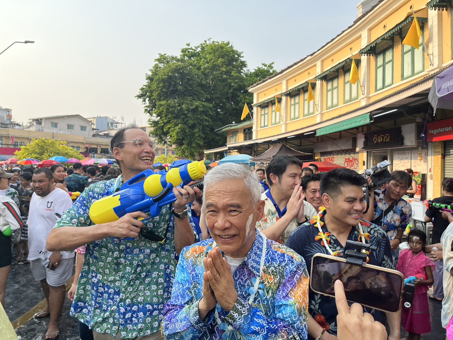 กรุงเทพฯ 13 เม.ย. – ไพรีพินาศ! “สุวัจน์-กรณ์” พาผู้สมัคร ส.ส.กทม. ขอพรวัดบวรฯ เจ้าอาวาสมอบพระไพรีพินาศ อวยพรให้ชนะทุกสิ่ง พร้อมเล่นน้ำสงกรานต์ถนนข้าวสาร “กรณ์” เผยรู้สึกเหมือน 14 อีกครั้ง!
