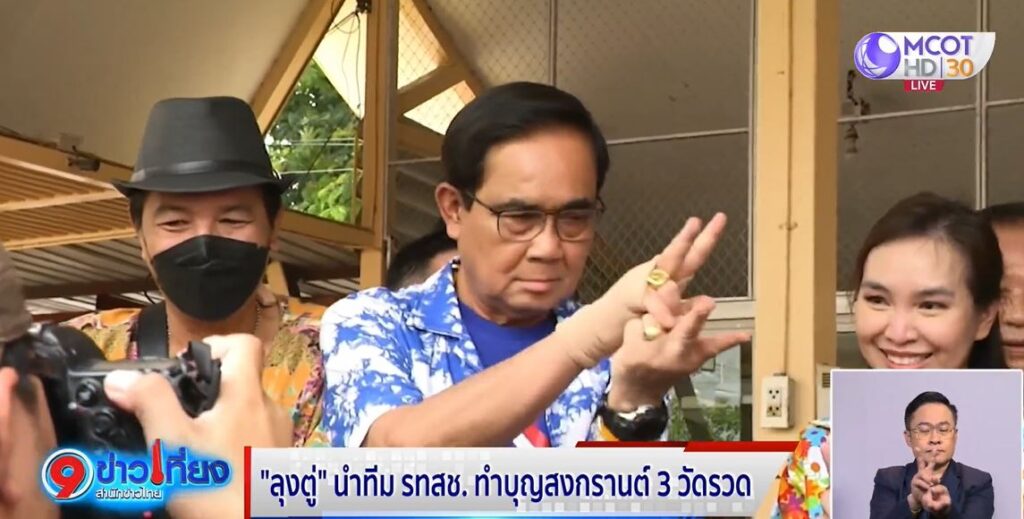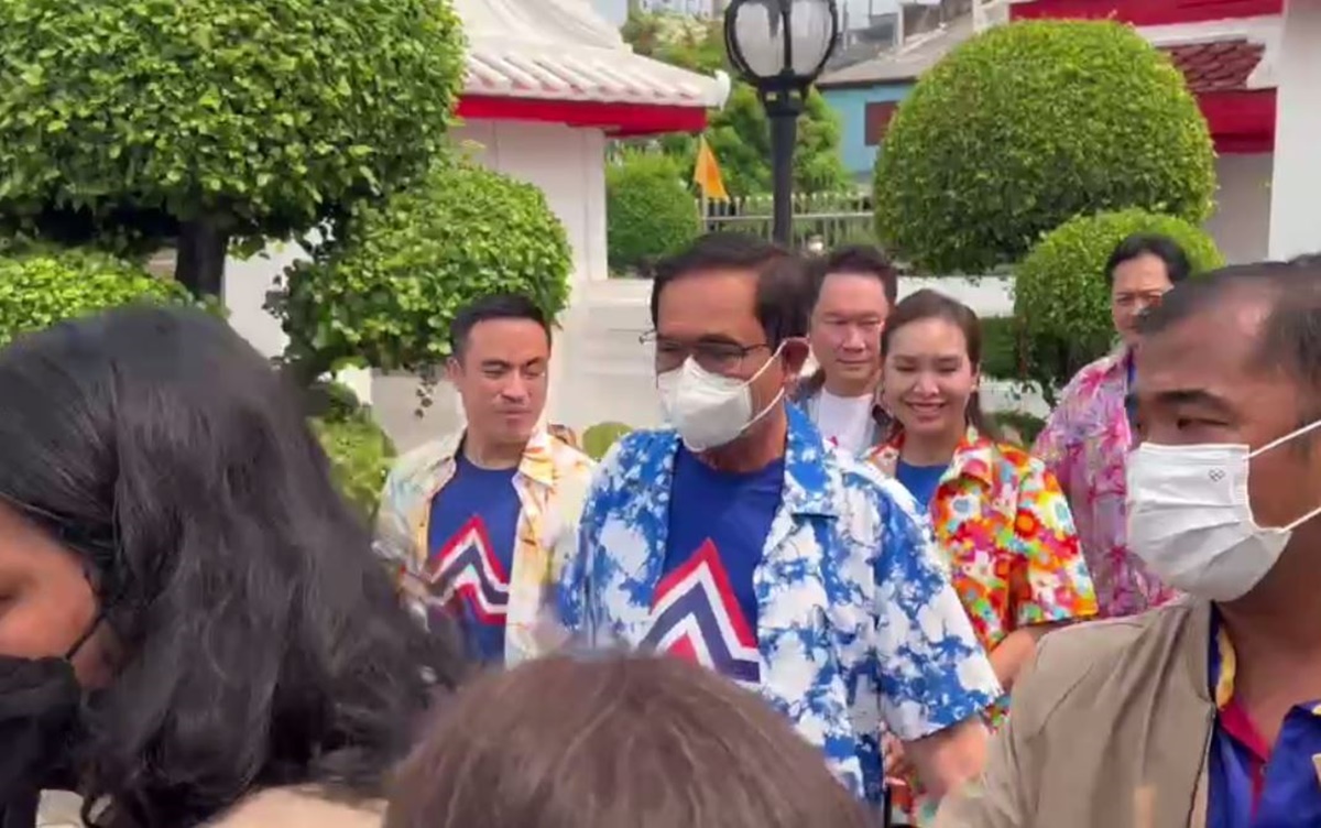 กรุงเทพฯ 14 เม.ย. – “พล.อ.ประยุทธ์” ควงทีม รทสช. ทำบุญสงกรานต์ 3 วัดรวด รับปีใหม่ไทย แบบเปิดเผยสื่อฯ ครั้งแรก หลังดำรงตำแหน่งนายกฯ 8 ปี ขอพรให้ประเทศชาติบ้านเมืองสงบ อ้อนประชาชนอย่าลืมเลือกเบอร์ 22 ให้นายกฯ บอกสื่ออย่าสงสัยอะไรมากนัก ให้ไปตามนโยบายดู ด้านประชาชนที่มาทำบุญ ส่งกำลังใจ บอก “ลุงตู่สู้ๆ-ลุงตู่อยู่ต่อ”