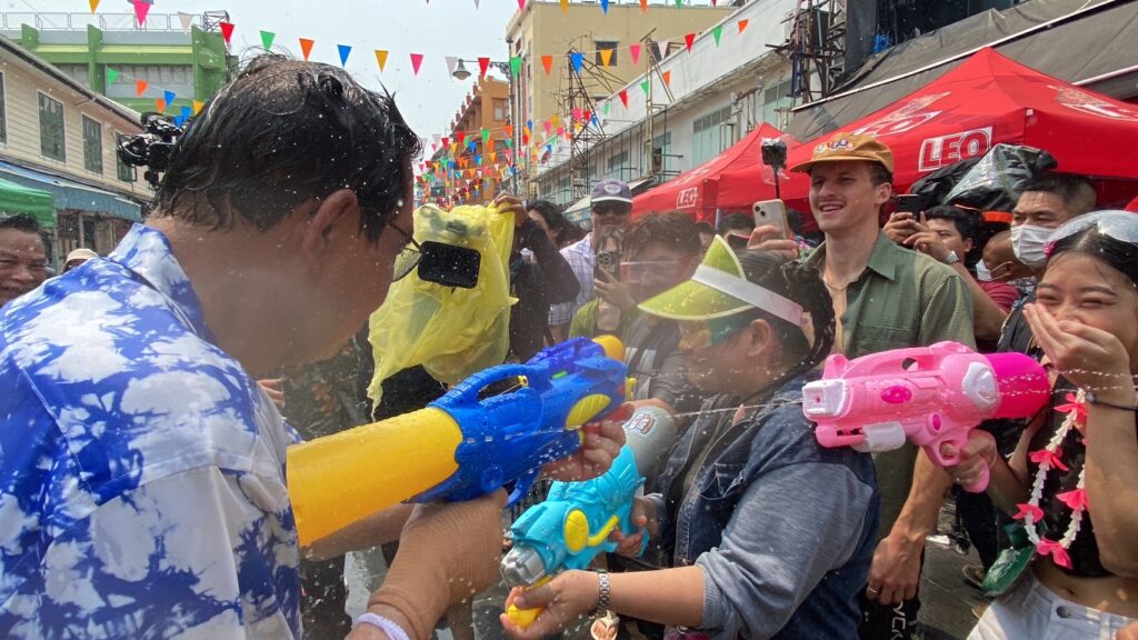 โดยช่วงหนึ่ง พล.อ.ประยุทธ์ ได้ให้เจ้าหน้าที่ซื้อปืนฉีดน้ำขนาดใหญ่มา เพื่อร่วมฉีดน้ำเล่นสงกรานต์กับประชาชน ซึ่งตลอดทาง พล.อ.ประยุทธ์ เล่นน้ำกับประชาชนอย่างสนุกสนาน ทั้งนี้ ระหว่างเล่นสาดน้ำสงกรานต์ เจอนักท่องเที่ยวต่างชาติ กล่าวว่า “นี่คือนายกรัฐมนตรีของไทยจริงหรือ” พร้อมหยิบโทรศัพท์มือถือขึ้นมาบันทึกภาพ เพื่อเป็นที่ระลึก