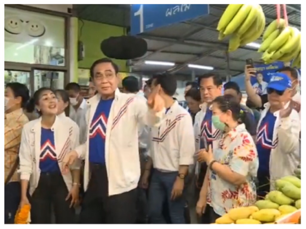 พลเอกประยุทธ์ จันทร์โอชา นายกรัฐมนตรีและรัฐมนตรีว่าการกระทรวงกลาโหม ในฐานะประธานยุทธศาสตร์พรรคและแคนดิเดตนายกรัฐมนตรีพรรครวมไทยสร้างชาติ พร้อมด้วยนายพีระพันธุ์ สาลีรัฐวิภาค หัวหน้าพรรค นายเอกณัฐ พร้อมพันธ์ เลขาธิการพรรค นายอนุชา บูรพชัยศรี รองหัวหน้าพรรค นางสาวทิพนันท์ ศิริชนะ ผู้สมัครส.ส.บัญชีรายชื่อพรรค ลงพื้นที่หาเสียงช่วยผู้สมัคร ส.ส.กทม.เขต 8 จตุจักรหลักสี่ นางสาวอรัญญา มณีแจ่ม ตลาดบองมาเช่