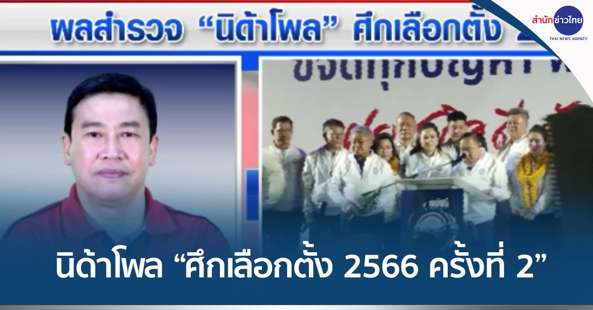 ศูนย์สำรวจความคิดเห็น “นิด้าโพล” สถาบันบัณฑิตพัฒนบริหารศาสตร์ (นิด้า) เปิดเผยผลสำรวจของประชาชน เรื่อง “ศึกเลือกตั้ง 2566 ครั้งที่ 2” ทำการสำรวจระหว่างวันที่ 3-7 เมษายน 2566 จากประชาชนที่มีอายุ 18 ปีขึ้นไป กระจายทุกภูมิภาค ระดับการศึกษา อาชีพ และรายได้ ทั่วประเทศ รวมทั้งสิ้น จำนวน 2,000 หน่วยตัวอย่าง เกี่ยวกับศึกเลือกตั้ง 2566 ครั้งที่ 2 การสำรวจอาศัยการสุ่มตัวอย่างโดยใช้ความน่าจะเป็น จากบัญชีรายชื่อฐานข้อมูลตัวอย่างหลัก (Master Sample) ของ “นิด้าโพล” สุ่มตัวอย่างด้วยวิธีแบบง่าย (Simple Random Sampling) เก็บข้อมูลด้วยวิธีการสัมภาษณ์ทางโทรศัพท์ โดยกำหนดค่าความเชื่อมั่น ร้อยละ 97.0