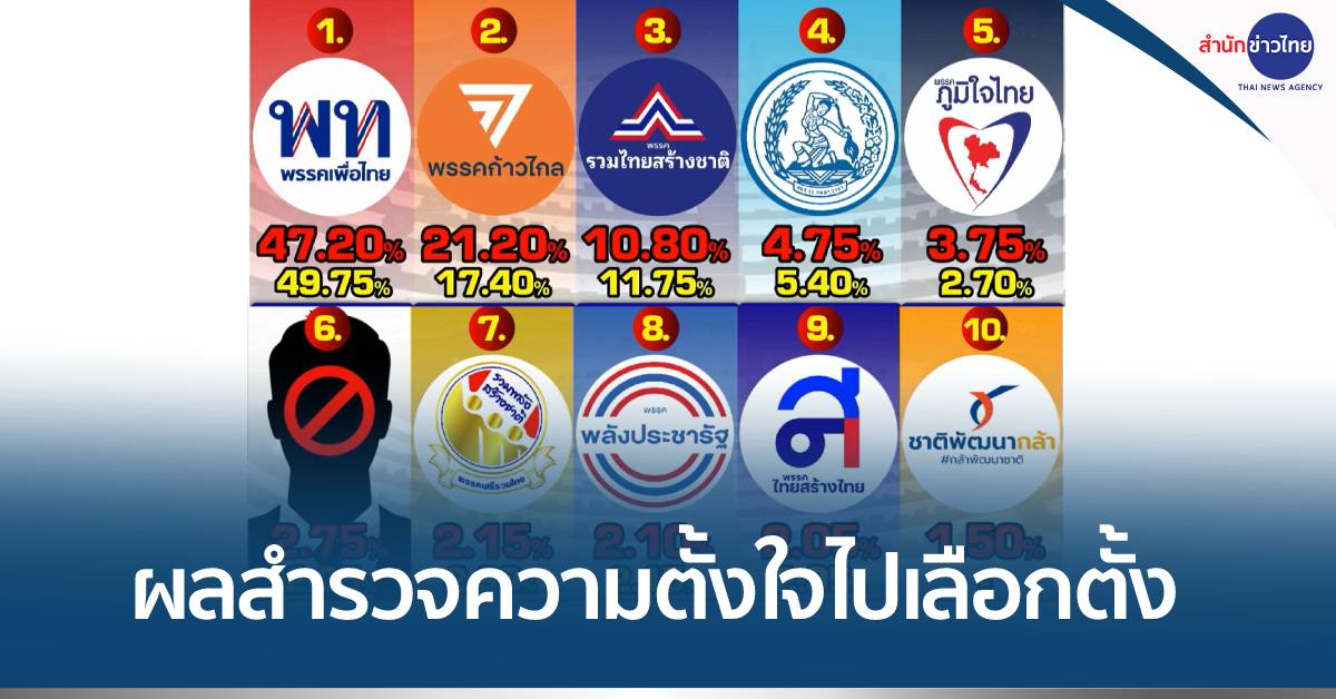 อันดับ 1 ร้อยละ 47.20 พรรคเพื่อไทย