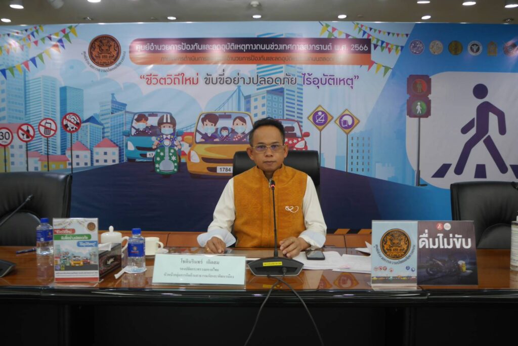 นายโชตินรินทร์ เกิดสม รองปลัดกระทรวงมหาดไทย ในฐานะประธานการประชุมคณะอนุกรรมการเฉพาะกิจศูนย์อำนวยการป้องกันและลดอุบัติเหตุทางถนนตลอดทั้งปี เปิดเผยว่า ศูนย์อำนวยการป้องกันและลดอุบัติเหตุทางถนนช่วงเทศกาลสงกรานต์ พ.ศ. 2566 โดยกรมป้องกันและบรรเทาสาธารณภัย และความร่วมมือของหน่วยงานภาคีเครือข่ายได้รวบรวมสถิติอุบัติเหตุทางถนนประจำวันที่ 16 เมษายน 2566 ซึ่งเป็นวันที่หกของการรณรงค์ “ชีวิตวิถีใหม่ ขับขี่อย่างปลอดภัย ไร้อุบัติเหตุ” เกิดอุบัติเหตุ 263 ครั้ง ผู้เสียชีวิต 36 ราย ผู้บาดเจ็บ 268 คน สาเหตุที่ทำให้เกิดอุบัติเหตุสูงสุด ได้แก่ ขับรถเร็วเกินกำหนด ร้อยละ 39.16 ดื่มแล้วขับ ร้อยละ 23.95 ยานพาหนะที่เกิดอุบัติเหตุสูงสุด ได้แก่ รถจักรยานยนต์ ร้อยละ 78.39 ส่วนใหญ่เกิดบนถนนกรมทางหลวง ร้อยละ 42.21 ถนนใน อบต./หมู่บ้าน ร้อยละ 29.66 บริเวณจุดเกิดเหตุเป็นทางตรง ร้อยละ 81.37 ช่วงเวลาที่เกิดอุบัติเหตุสูงสุด ได้แก่ ช่วงเวลา 00.01 – 01.00 น. ร้อยละ 9.87 ผู้บาดเจ็บและเสียชีวิตอยู่ในช่วงอายุ 20 – 29 ปี ร้อยละ 22.37 โดยจังหวัดที่เกิดอุบัติเหตุสูงสุด ได้แก่ กาญจนบุรี (13 ครั้ง) จังหวัดที่มีผู้บาดเจ็บสูงสุด ได้แก่ ชุมพร (15 คน) จังหวัดที่มีผู้เสียชีวิตสูงสุด ได้แก่ กรุงเทพมหานคร (5 ราย) ทั้งนี้ เจ้าหน้าที่ได้จัดตั้งจุดตรวจหลัก 1,857 จุด เจ้าหน้าที่ปฏิบัติงาน 54,238 คน เรียกตรวจยานพาหนะ 322,570 คัน มีผู้ถูกดำเนินคดี รวม 48,067 ราย มีความผิดฐานไม่มีใบขับขี่ 14,177 ราย ไม่สวมหมวกนิรภัย 13,127 ราย