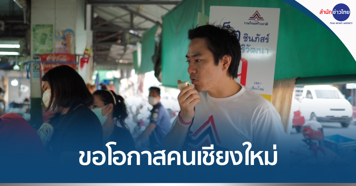 เชียงใหม่ 17 เม.ย. – “เก็ต ชินภัสร์ กิจเลิศสิริวัฒนา” ผู้สมัคร ส.ส.เชียงใหม่ เขต 1 พรรครวมไทยสร้างชาติ เบอร์ 9 ขอโอกาสคนเชียงใหม่และพลังเงียบเลือกเข้าไปทำงาน ปลื้มนโยบาย “คนละครึ่ง – สวัสดิการพลัส” ถูกใจชาวบ้าน แม้การแข่งขันในพื้นที่ค่อนข้างรุนแรงแต่ใจสู้