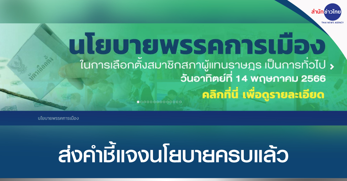 สำนักงาน กกต. 19 เม.ย. – 70 พรรคการเมืองส่งคำชี้แจงนโยบายตามมาตรา 57 ที่ต้องใช้งบฯ ระบุวงเงิน ความคุ้มค่า และผลกระทบ ให้ กกต. ครบทุกพรรคตามเวลาที่กำหนดแล้ว ประชาชนสามารถตรวจสอบนโยบายได้ทางเว็บไซต์ของ กกต.