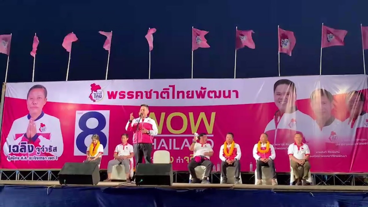 ด้านนายวราวุธ ปราศรัยว่า พรรคชาติไทยพัฒนามาขอคะแนนให้พรรค และนายเฉลิง ในฐานะผู้สมัคร ส.ส.ฉะเชิงเทรา เขต 1 ในการเลือกตั้งครั้งนี้ มีหลายพรรคนำเสนอหลายนโยบาย วันนี้ (19 เม.ย.) มีหลายพรรคหาเสียง และตั้งเวทีใกล้เคียงกัน แต่เวทีของพรรคชาติไทยพัฒนามีคนฟังปราศรัยมากกว่า ส่วนนโยบายที่พรรคการเมืองนำเสนอมีหลากหลาย รวมถึงการให้เงิน แต่ให้ลูกหลานใช้หนี้แทน ทั้งนี้ ตนมองว่า นโยบายที่ดีคือการแก้ปัญหาให้วันนี้และอนาคต ไม่ทิ้งภาระหนี้สินให้คนในอนาคต ตนเชื่อว่านโยบายแจกเงินวันนี้ เป็นหนี้ในวันหน้า คนฉะเชิงเทราไม่ต้องการแน่นอน