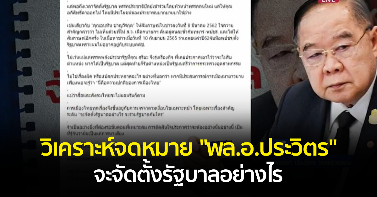 กรุงเทพฯ 19 เม.ย. – MCOT เจาะลึกเลือกตั้ง 66 วันนี้ เฟซบุ๊ก “พล.อ.ประวิตร วงษ์สุวรรณ” มีความเคลื่อนไหวอีกครั้ง สำหรับจดหมายน้อยฉบับที่ 9 “จะจัดตั้งรัฐบาลอย่างไร” คุยกับ รศ.ดร.ธนพร ศรียากูล นายกสมาคมรัฐศาสตร์ มหาวิทยาลัยเกษตรศาสตร์.-สำนักข่าวไทย
