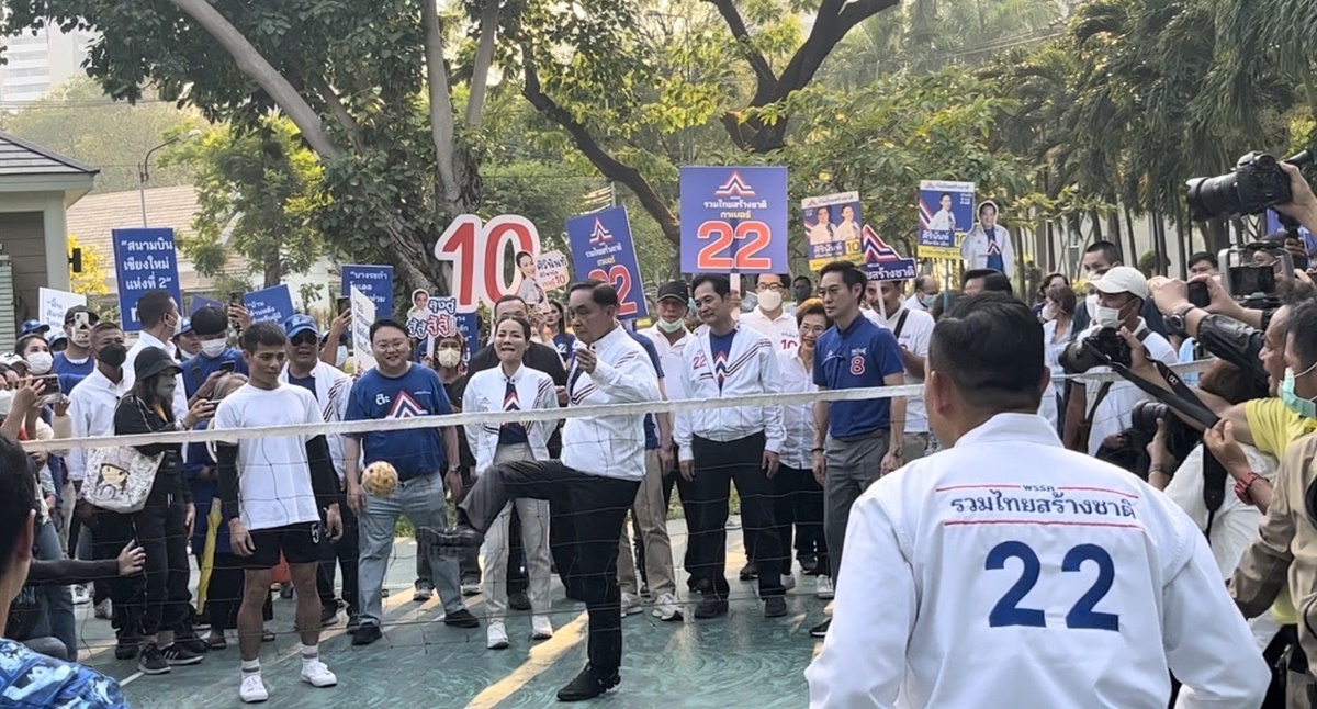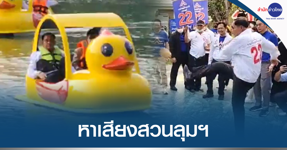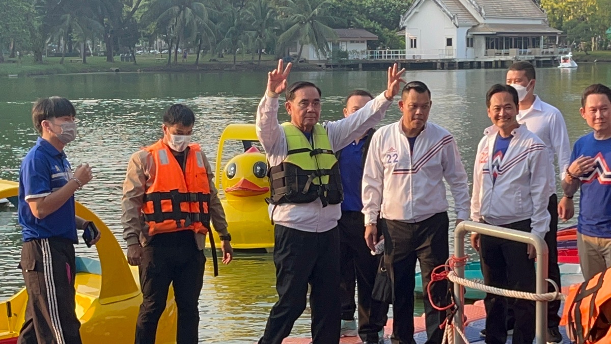 สวนลุมฯ 20 เม.ย. – “พล.อ.ประยุทธ์” นำทีมพรรครวมไทยสร้างชาติ หาเสียงสวนลุมฯ ปั่นเรือเป็ด-โชว์ฟิตเตะตะกร้อ สร้างสีสันให้คนออกกำลังกาย ก่อนลุยต่อย่านเยาวราช