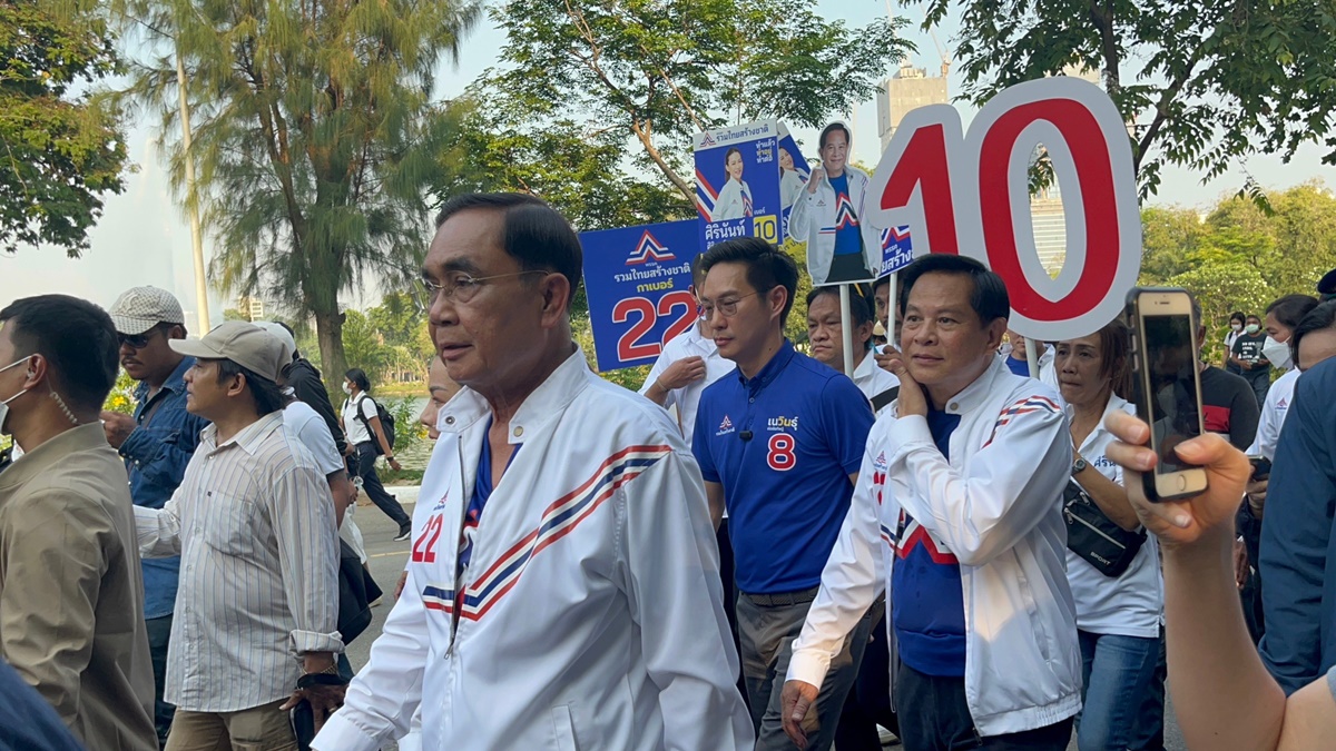 พล.อ.ประยุทธ์ จันทร์โอชา ประธานคณะกรรมการกำหนดแนวทางและยุทธศาสตร์พรรครวมไทยสร้างชาติ และแคนดิเดตนายกรัฐมนตรี พรรครวมไทยสร้างชาติ พร้อมด้วย นายพีระพันธุ์ สาลีรัฐวิภาค หัวหน้าพรรครวมไทยสร้างชาติ นายเอกนัฐ พร้อมพันธุ์ เลขาธิการพรรค รวมถึงผู้สมัคร ส.ส.ในพื้นที่ กทม. หลายเขต ลงพื้นที่พบปะประชาชนบริเวณสวนลุมพินี