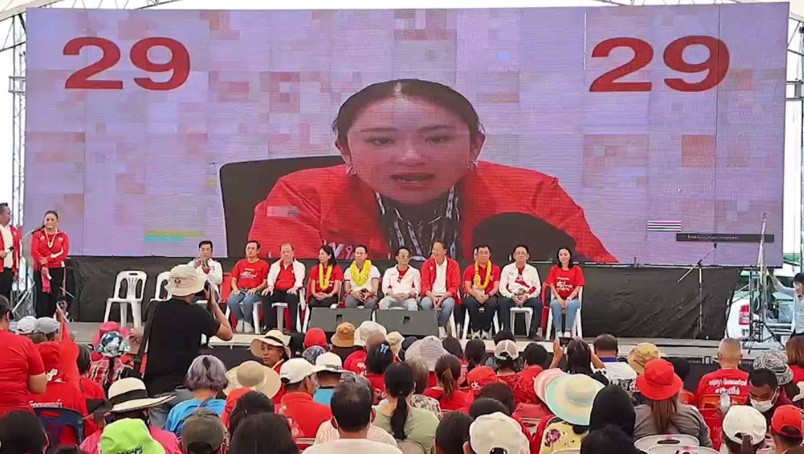 น.ส.แพทองธาร ชินวัตร แคนดิเดตนายกรัฐมนตรี พรรคเพื่อไทย และหัวหน้าครอบครัวเพื่อไทย กล่าวทักทายพี่น้องประชาชนชาวหนองคายผ่านระบบวิดีโอคอล ฝากความคิดถึงจากอดีตนายกฯ ทักษิณ ชินวัตร ย้ำเป้าหมายแลนด์สไลด์ เพื่อให้พรรคเพื่อไทยได้แก้ไขปัญหาปากท้องให้ประชาชน พร้อมเสริมถึงนโยบายของพรรคเพื่อไทย ที่มีประชาชนเป็นศูนย์กลางเสมอ เพื่อให้พี่น้องทำงานเหนื่อยน้อยลง มีรายได้เพิ่มมากขึ้น รวมทั้งลดอุปสรรคให้พี่น้องประชาชนค้าขายได้สะดวกขึ้น และสานต่อโครงการรถไฟฟ้าความเร็วสูงให้ประสบความสำเร็จ