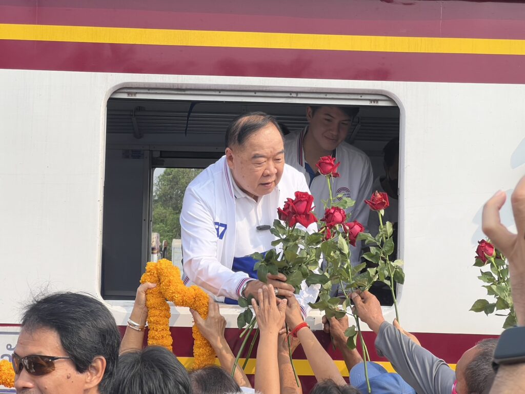 ผู้สื่อข่าวรายงานว่า ระหว่างที่พลเอกประวิตร วงษ์สุวรรณ หัวหน้าพรรคพลังประชารัฐ ได้เดินทาง ด้วยรถไฟมุ่งหน้าไปจังหวัดนครราชสีมา ได้เปลี่ยนเสื้อแจ็กเก็ตเป็นเสื้อพรรคเบอร์ 37 สีขาว เมื่อถึงสถานีชุมทางภาชี ได้ทักทายผู้สมัครและมวลชน จ.อยุธยา ที่มาให้การต้อนรับ โดยพลเอกประวิตรได้ชะโงกหน้าอออกมาจากหน้าต่างโบกี้รถไฟ พร้อมรับดอกไม้ ถ่ายภาพ จากนั้นได้ถือไมค์ขอบคุณประชาชนที่มาต้อนรับจำนวนมาก ด้วยสีหน้ายิ้มแย้ม และทักทายว่าสบายดีไหมครับ ถือโอกาสช่วงสงกรานต์ปีใหม่ไทย อวยพรให้มีความสุขไปตลอด ท่ามกลางเสียงตะโกนเชียร์จากชาวบ้าน เลือกเบอร์ 37 ขอให้เป็นนายกรัฐมนตรีต่อไป ซึ่งพลเอกประวิตร ตอบกลับว่าอยากให้เป็น ก็ต้องเลือกสิครับ .-สำนักข่าวไทย