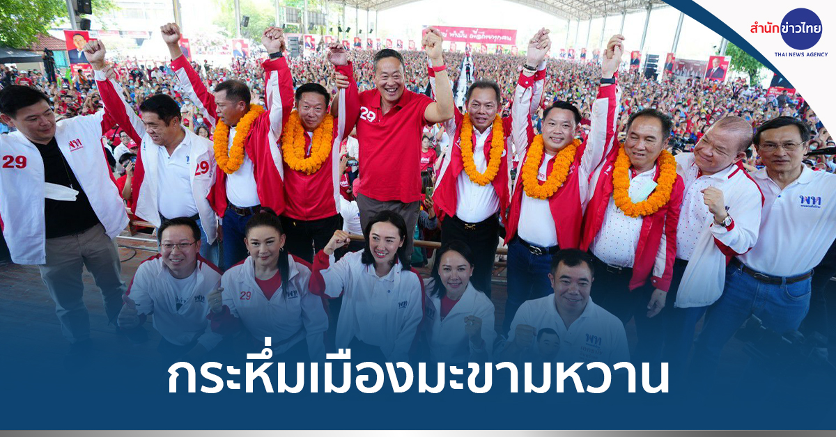 เพชรบูรณ์ 22 เม.ย.- เพื่อไทยปราศรัยกระหึ่มเมืองมะขามหวาน ‘เศรษฐา’ ประกาศจัดการปัญหาคาราคาซัง เศรษฐกิจตกต่ำ-ยาเสพติด ต้องหมดไป เลือกเพื่อไทยให้แลนด์สไลด์ทั้งแผ่นดิน