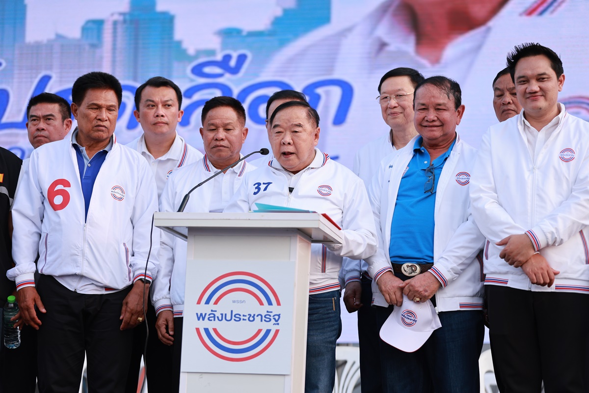 ต่อมาเวลา 17.50 น. พล.อ.ประวิตร วงษ์สุวรรณ รองนายกรัฐมนตรี ในฐานะหัวหน้าพรรค ได้ขึ้นปราศรัย โดย พล.อ.ประวิตร เริ่มด้วยการทักทายว่า “พี่น้องเอ้ย พี่น้องเอ้ย จ.นครศรีธรรมราช” ก่อนที่จะระบุว่า “จ.นครราชสีมา ลองใจว่าจะถูกมั้ย” ทำให้ประชาชนต่างชอบใจ